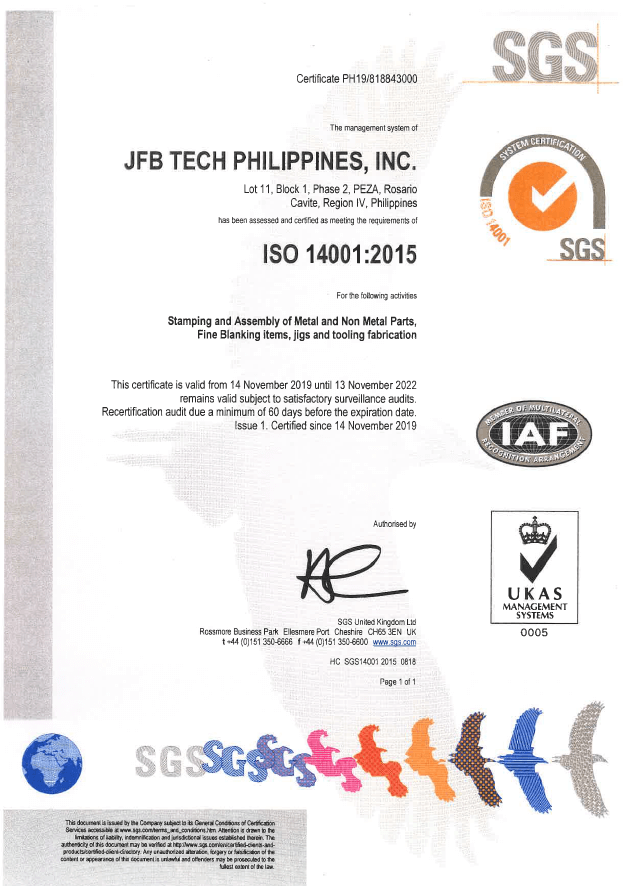 JFB TECH PHILIPPINES INC. is engaged in Stamping and Assembly of Various Metal Parts, manufacture of jigs, dies, design and other related products.
